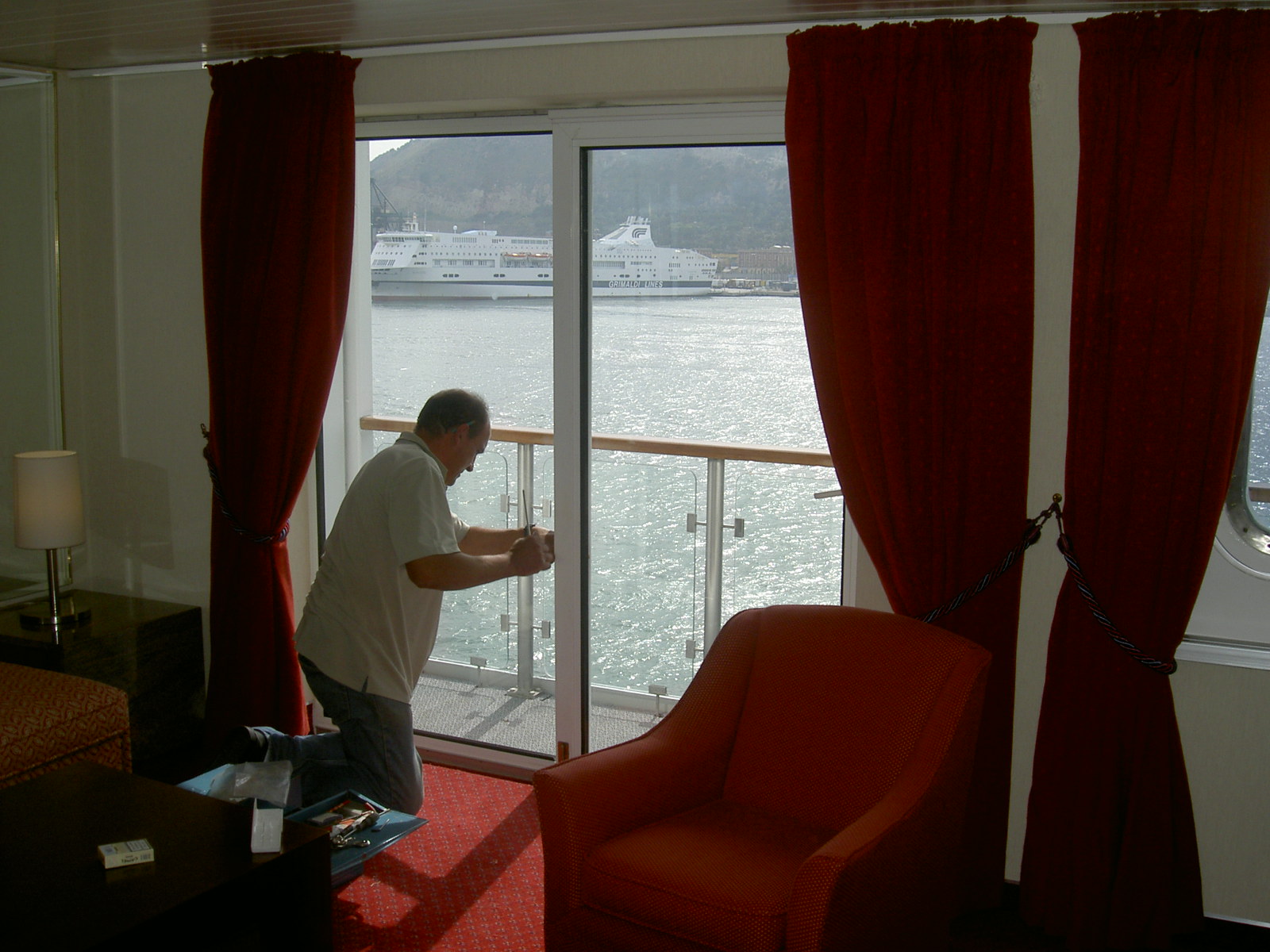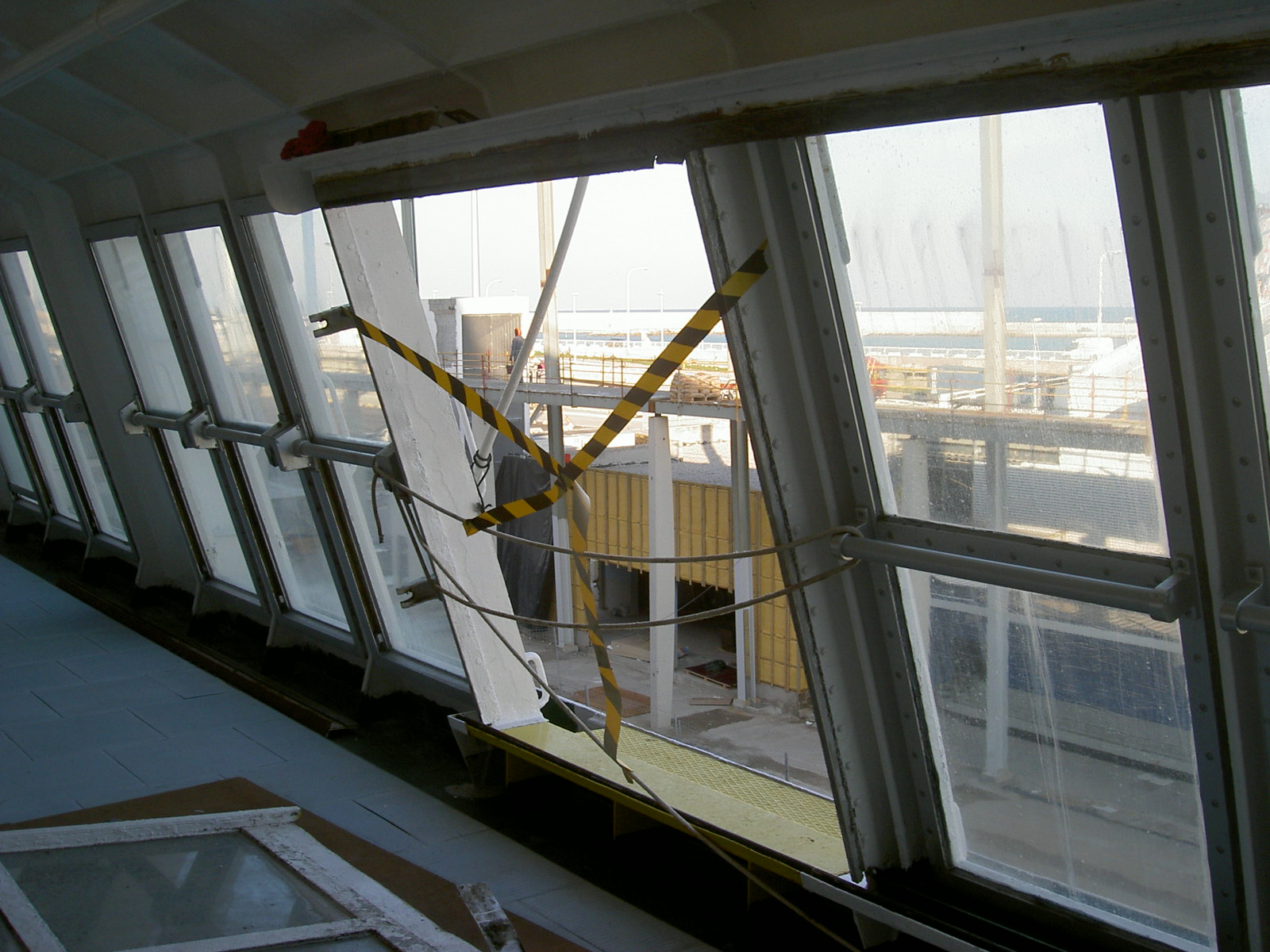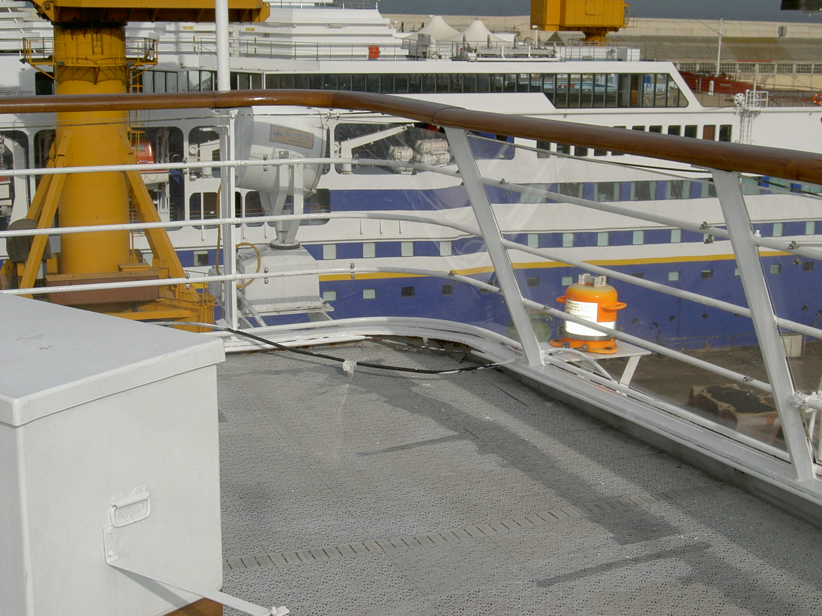 Reparaciones varias y mantenimiento en varios buques de la empresa Pullmantur consistentes en acristalamientos con paneles de policarbonato transparentes en barandillas de Proa para evitar aire bajo en terraza solarium.